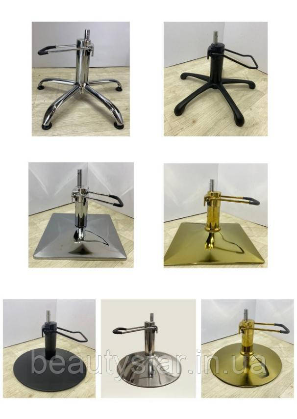 Індивідуальний вибір бази-основи крісла: Ми пропонуємо кілька варіантів бази на вибір: хрестовина, диск або квадрат. Колір бази також можна підібрати відповідно до ваших побажань: золото, чорний або хромований.